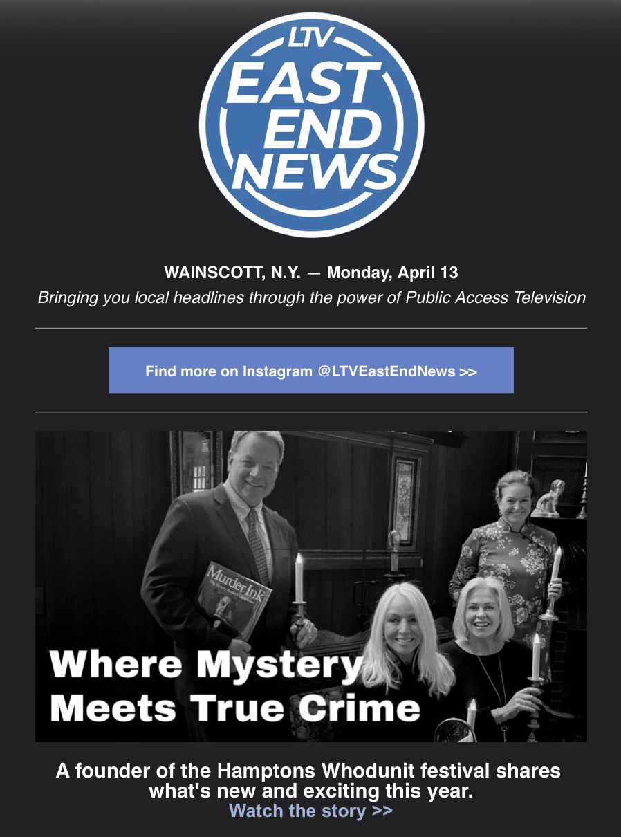 Our panels, book signings, publisher teas and interactive mystery-themed dinner events in historic East Hampton Village are almost here. Four days of mingling with bestselling authors and leading true crime investigators, forensic and legal experts. We look forward to seeing you in East Hampton Village on Thursday!