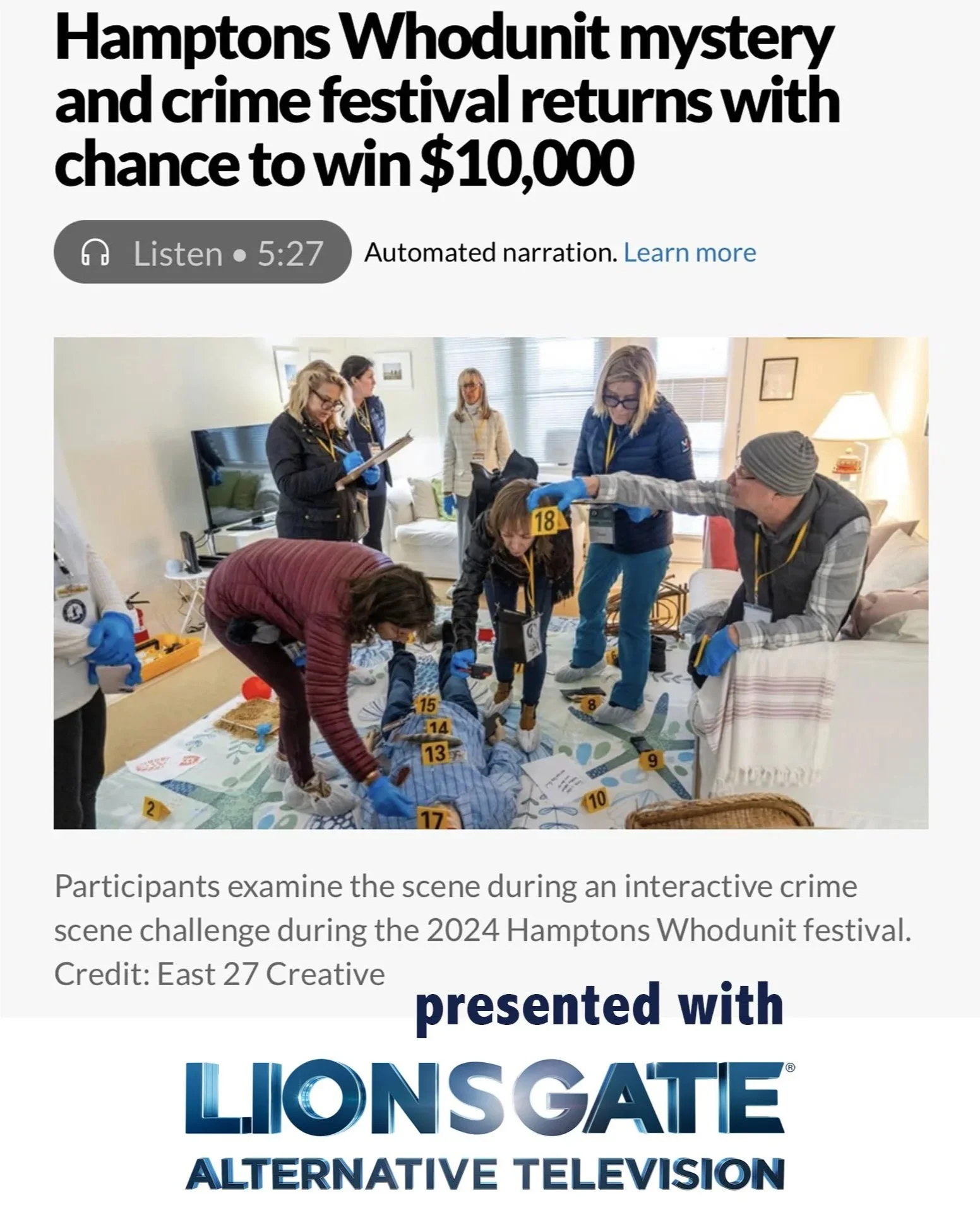 to welcome you to the fourth annual Hamptons Whodunit, a truly unique mystery and true crime festival!